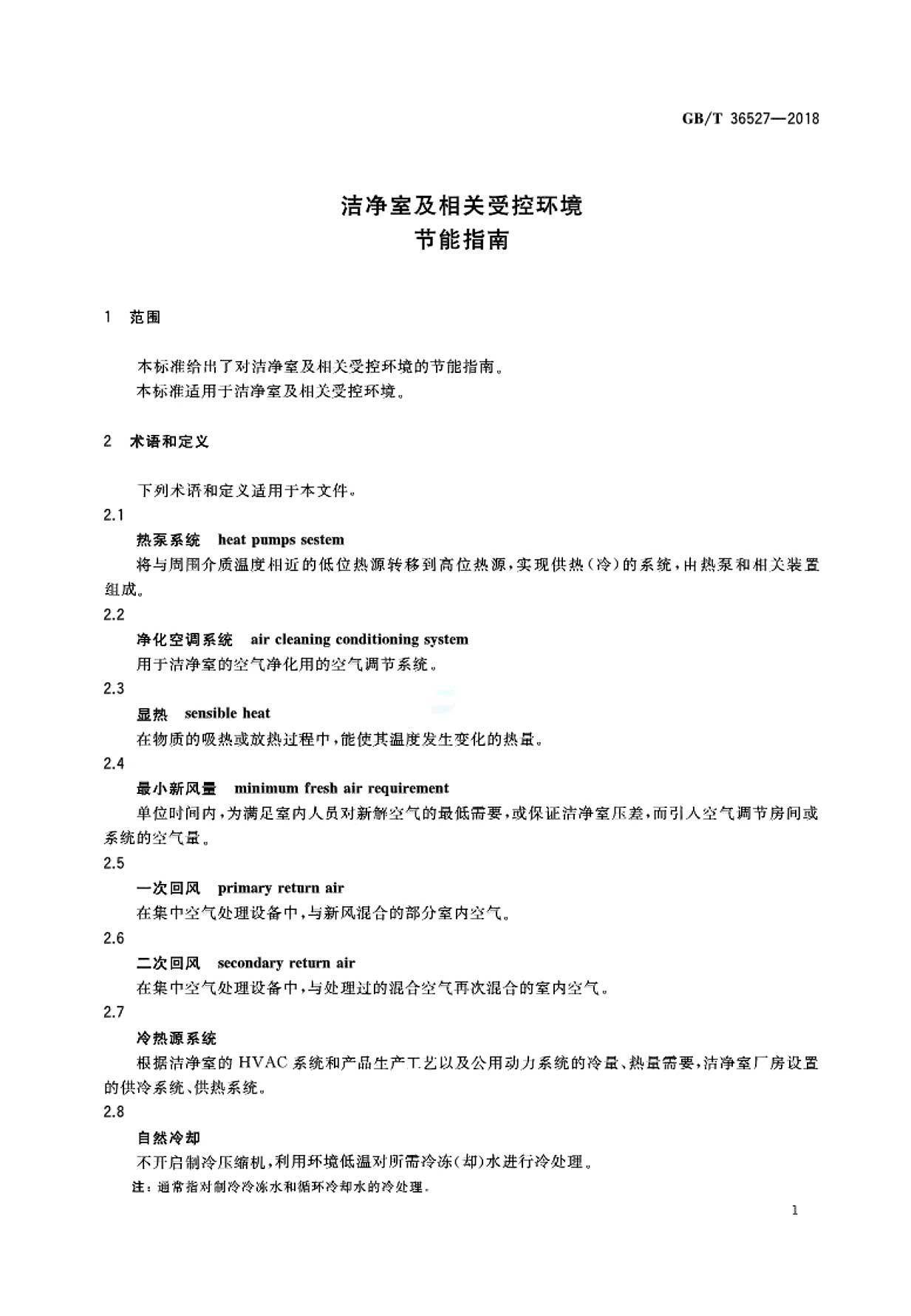 潔凈室及相關(guān)受控環(huán)境節(jié)能指南 GB/T36527-2018